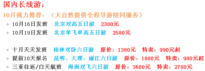 大自然秋季旅游線路特價來襲!