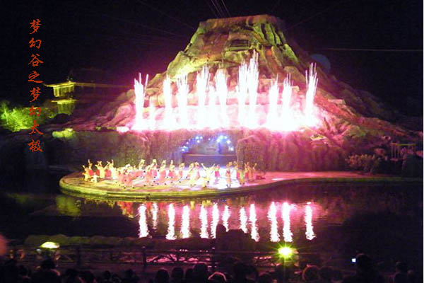 夜橫店 夢(mèng)幻谷 關(guān)鍵詞——越夜越美麗 大型夜間影視旅游主題樂(lè)園,精彩絕倫的藝術(shù)盛宴——《夢(mèng)幻太極》,“火山爆發(fā)".體驗(yàn)前所未有的震撼與壯觀,古韻繚繞《江南遺韻》,五彩繽紛的國(guó)際星街,還有眾多的游客項(xiàng)目,讓你度過(guò)一個(gè)充滿快樂(lè)和動(dòng)感的夢(mèng)幻之夜。
